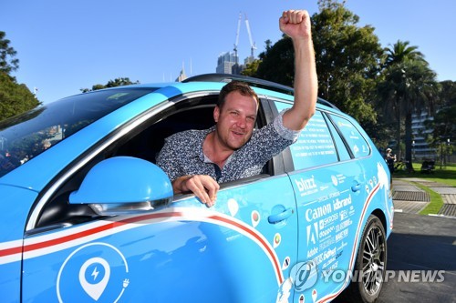 Dutchman Wiebe Wakker in an electric vehicle arrives in Sydney