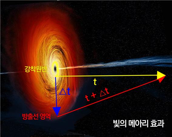 ¹æÃâ¼± ¿µ¿ª¿¡¼­ ³ª¿À´Â ºûÀÇ ¹à±â º¯È­´Â °­Âø¿ø¹Ý¿¡¼­ ³ª¿À´Â ºûÀÇ ¹à±â º¯È­¸¦ µû¶ó º¯Çϸç, ¸Þ¾Æ¸®Ã³·³ ½Ã°£Â÷¸¦ µÎ°í ´Ê°Ô °üÃøµÈ´Ù. ÀÌ ¸Þ¾Æ¸® È¿°ú¸¦ ÃøÁ¤ÇÏ¸é °­Âø¿ø¹Ý¿¡¼­ ¹æÃâ¼± ¿µ¿ª±îÁö °Å¸®¸¦ ±¸ÇÒ ¼ö ÀÖ´Ù. À̸¦ Åä´ë·Î ºí·¢È¦ÀÇ Áú·®µµ ±¸ÇÒ ¼ö ÀÖ´Ù. ¼­¿ï´ë Á¦°ø ¸Þ¾Æ¸® È¿°ú·Î ÃøÁ¤µÈ °Å¸®¿Í °¡½º±¸¸§ÀÇ È¸Àü¼Óµµ¸¦ ÅëÇØ ¿¬±¸ÆÀÀº NGC 4395 Á᫐ ºí·¢È¦ÀÇ Áú·®À» žçÁú·®ÀÇ ¾à 1¸¸ ¹è·Î ÃßÁ¤Çß´Ù. ¿ì ±³¼ö´Â ¡°Áö±Ý±îÁö ¼ö¼Ò °¡½º±¸¸§À» ÀÌ¿ëÇØ ÃøÁ¤ÇÑ ºûÀÇ ¸Þ¾Æ¸® È¿°ú Áß °¡Àå ªÀº 80ºÐÀÇ ½Ã°£Â÷¸¦ ¾ò¾ú´Ù¡±°í ¸»Çß´Ù. ¸Þ¾Æ¸® È¿°ú·Î ÃøÁ¤ÇÑ ºí·¢È¦ Áß °¡Àå ÀÛÀº ºí·¢È¦·Î Áß°£Áú·® ºí·¢È¦ÀÌ ½ÇÁ¦·Î Á¸ÀçÇÑ´Ù´Â °­·ÂÇÑ Áõ°Å¶ó°í ¿¬±¸ÆÀÀº ¼³¸íÇß´Ù.
