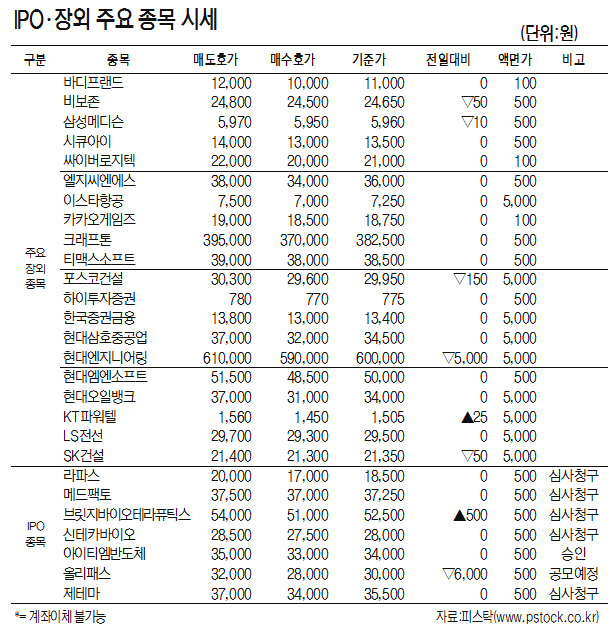 [Ç¥]IPO¡¤Àå¿Ü ÁÖ¿ä Á¾¸ñ ½Ã¼¼(9¿ù 4ÀÏ)