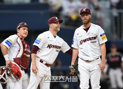Ű¿ò ¼±¹ßÅõ¼ö ¿äŰ½Ã(¿À¸¥ÂÊ)°¡ 7ÀÏ °íô½ºÄ«À̵¼¿¡¼ ¿¸° 2019 KBO¸®±× Ű¿ò°ú LGÀÇ ÁØÇ÷¹ÀÌ¿ÀÇÁ 2Â÷Àü 3ȸÃÊ 1»ç 1,2·ç »óȲ¿¡¼ LG À¯°³²¿¡°Ô 1ŸÁ¡ 2·çŸ¸¦ Çã¿ëÇÑ µÚ °ÆÇµÇ°í ÀÖ´Ù. 2019. 10. 7.