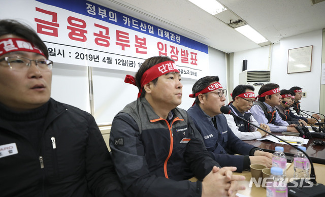 ¡¼¼­¿ï=´º½Ã½º¡½ÃÖÁø¼® ±âÀÚ = Çã±Ç Àü±¹À½À¶»ê¾÷³ëµ¿À§¿øÀå°ú ±èÇöÁ¤ »ç¹«±ÝÀ¶³ëÁ¶À§¿øÀåÀ» ºñ·ÔÇÑ 6°³ Ä«µå»ç ³ëÁ¶ °ü°èÀÚµéÀÌ 12ÀÏ ¿ÀÀü ¼­¿ï ³²´ë¹®·Î ±ÝÀ¶³ëÁ¶ ȸÀǽǿ¡¼­ Á¤ºÎÀÇ Ä«µå»ê¾÷ ´ëÃ¥°ü·Ã ±ÝÀ¶°øµ¿ÅõÀﺻºÎ ÀÔÀå ¹ßÇ¥¸¦ Çϰí ÀÖ´Ù.