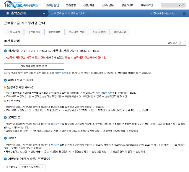 ±¹¼¼Ã» ȨÆäÀÌÁö Áß'2019 ±Ù·ÎÀå·Á±Ý' »çÀü¿¹¾àÀÌ ½ÃÀ۵ƴÙ. ±¹¼¼Ã»Àº 26ÀÏ È¨ÆäÀÌÁö¸¦ ÅëÇØ ¿À´Â 30ÀϱîÁö »çÀü¿¹¾à ½ÅûÀ» ¹Þ´Â´Ù°í °øÁöÇß´Ù.