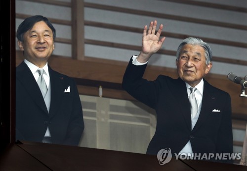 (FILE)A file photo dated 23 December 2018 shows Japan's Emperor Akihito (R), flanked by Crown Prince Naruhito (L), waves to well-wishers after delivering his speech marking his 85th birthday, last his birthday on the throne, at the Imperial Palace in Tokyo, Japan. Emperor Akihito will abdicate on 30 April 2019 and his son Naruhito will succeed on 01 May 2019. It will be the first abdication by Japanese emperor in about two centuries. EPA/KIMIMASA MAYAMA
