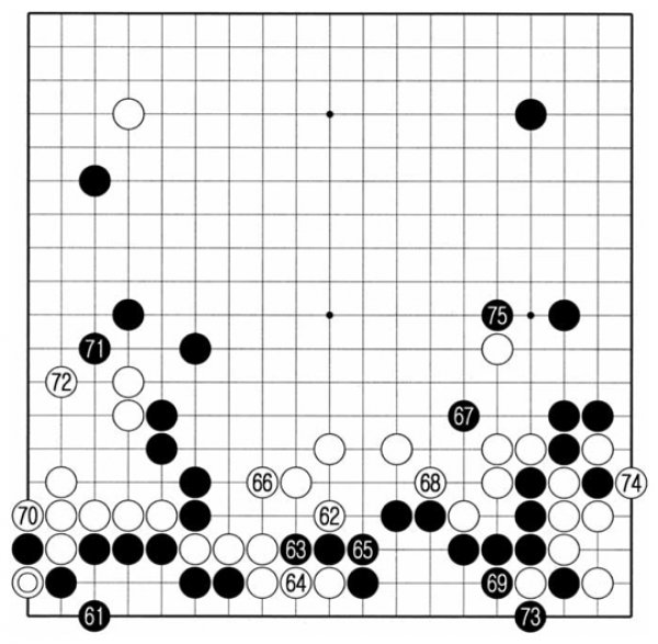 Çѵ¹Àº Áï°¢ ÁÂÇϱ͸¦ °Çµå¸®Áö ¾Ê°í, ¹é 62, 64·Î ÇϺ¯ ÈæÀÇ »îÀ» °¿äÇÑ´Ù. ÈæÀº 67ÀÇ ³¯Ä«·Î¿î ¼ö¸¦ µÐ µÚ 69±îÁö ¾ÈÇüÀ» È®º¸Çß´Ù. Èæ 69 ´ë½Å Âü°í 2µµ Èæ 1·Î ³¢¿ì´Â ¹¦¼ö°¡ ÀÖ´Ù. ÀÌ ¹¦¼ö·Î ÈæÀº ¿ìÇÏ ¹é ³Ë Á¡À» ÀâÀ» ¼ö ÀÖ´Ù. ÇÏÁö¸¸ ¹é 8ÀÌ ¿À¸é ¹éÀÇ ÀÚ¼¼°¡ ³Ê¹« µÎÅÍ¿öÁ® ÈæÀÌ À̵æÀ» º» °ÍÀÎÁö ºÒÈ®½ÇÇÏ´Ù.