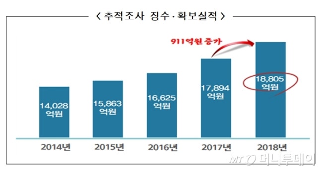 ±¹¼¼Ã»Àº Àº´ÐÀç»ê ÃßÀûÁ¶»ç Àü´ãÆÀÀº ¡â2014³â 1Á¶4028¾ï¿ø ¡â2015³â 1Á¶5863¾ï¿ø ¡â2016³â 1Á¶6625¾ï¿ø ¡â2017³â 1Á¶7894¾ï¿ø ¡â2018³â 1Á¶8805¾ï¿ø µî ¡¼ö½ÇÀûÀ» °Åµ×´Ù. ¿ÃÇØ´Â ȣȭ»ýȰÀ» ÇÏ´Â °í¾×ü³³ÀÚ 325¸íÀ» ÁßÁ¡ ÃßÀûÁ¶»ç ´ë»óÀ¸·Î ¼±Á¤ÇØ Ã¼³³¾×À» È®º¸Çß´Ù. ÀÌµé °ÅÁÖÁö´Â ¼­¿ï 166¸í, °æ±â 124¸í, ºÎ»ê 15¸í, ´ë±¸ 5¸í, ´ëÀü 11¸í, ±¤ÁÖ 4¸í µîÀ̾ú´Ù.