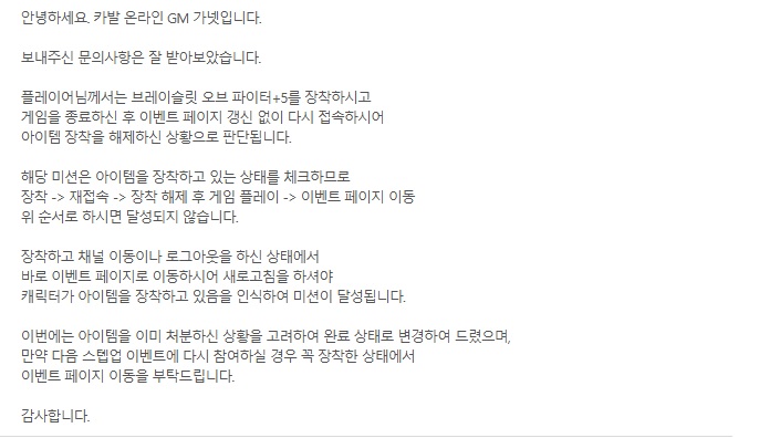 ¾ÆÀÌÅÛ Âø¿ë ÈÄ Å¬¶óÀÌ¾ðÆ® Á¾·á Çϰí ÀçÁ¢¼ÓÇØ¾ßÇÑ´Ù.