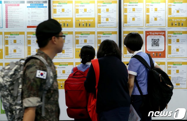 (¼­¿ï=´º½º1) ¹ÚÁ¤È£ ±âÀÚ = 25ÀÏ ¿ÀÈÄ ¼­¿ï °­³²±¸ ´ëÄ¡µ¿ ¼¼ÅØ¿¡¼­ ¿­¸° 2019 °íÁ¹¼º°ø Ãë¾÷´ë¹Ú¶÷ȸ¸¦ ãÀº ±º À庴 ¹× ÇлýµéÀÌ Ã¤¿ëÁ¤º¸ °Ô½ÃÆÇÀ» »ìÆìº¸°í ÀÖ´Ù. 2019.6.25/´º½º1