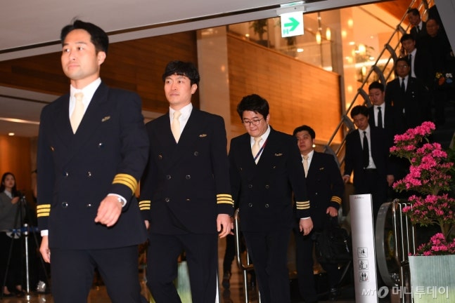 ´ëÇÑÇ×°ø ±âÀåµéÀÌ 12ÀÏ ¿ÀÈÄ ¼­¿ï ¼­´ë¹®±¸ ½ÅÃÌ ¼¼ºê¶õ½ºº´¿ø Àå·Ê½ÄÀå¿¡ ¸¶·ÃµÈ °í(ͺ) Á¶¾çÈ£ ȸÀå ºó¼Ò·Î µé¾î¼­°í ÀÖ´Ù.