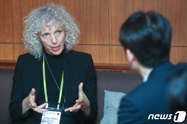 2016³â ±×¸°Çǽº »ç¹«ÃÑÀå¿¡ ¿À¸¥ ÀÌÈÄ ¼¼ ¹øÂ° Çѱ¹À» ¹æ¹®ÇÑ Á¦´ÏÆÛ ¸® ¸ð°Ç(Jennifer Morgan) ÃÑÀåÀº Áö³­ 14ÀÏ ¼­¿ï½Å¶óÈ£ÅÚ¿¡¼­ <´º½º1>°ú ¸¸³ª ÀÎÅͺ並 °¡Á³´Ù.