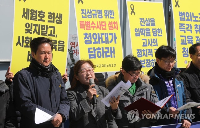 (¼¿ï=¿¬ÇÕ´º½º) ÇÑ»ó±Õ ±âÀÚ = 2ÀÏ Àü±¹±³Á÷¿ø³ëµ¿Á¶ÇÕÀÌ ¼¼¿ùÈ£ Âü»ç 5Áֱ⸦ ¸Â¾Æ Àü¸é Àç¼ö»ç¸¦ ¿ä±¸ÇÏ´Â ±âÀÚȸ°ßÀ» ±¤È¹® ±¤Àå¿¡¼ Çϰí ÀÖ´Ù. Àü±³Á¶´Â ¼¼¿ùÈ£ Âü»ç 5Áֱ⸦ ¸Â¾Æ Áø»ó±Ô¸íÀ» À§ÇÑ °øµ¿¼ö¾÷°ú û¿Í´ë û¿ø µîÀ» ÁøÇàÇÒ ¿¹Á¤ÀÌ´Ù. 2019.4.2
