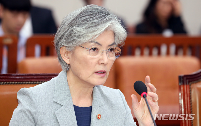 ¡¼¼­¿ï=´º½Ã½º¡½ÀÌÁ¾Ã¶ ±âÀÚ = 22ÀÏ ¼­¿ï ¿©Àǵµ ±¹È¸¿¡¼­ ¿­¸° ¿Ü±³ÅëÀÏÀ§¿øÈ¸ ÀüüȸÀÇ¿¡ Ãâ¼®ÇÑ ¿Ü±³ºÎ °­°æÈ­ Àå°üÀÌ ÀÇ¿ø ÁúÀÇ¿¡ ¿Ü±³ºÎ ´ëÃ¥¿¡ ´ëÇØ ¸»Çϰí ÀÖ´Ù. 2019.07.22.