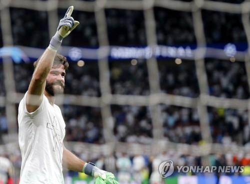 Liverpool goalkeeper Alisson Becker celebrates after the UEFA Champions League final between Tottenham Hotspur and Liverpool FC at the Wanda Metropolitano stadium in Madrid, Spain, 01 June 2019. Liverpool won 2-0. EPA/Kiko Huesca