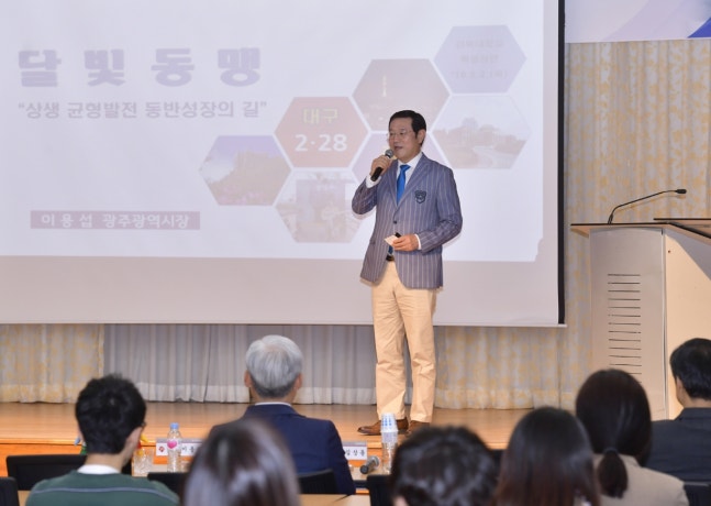 |  ¡ãÀ̿뼷 ±¤ÁÖ±¤¿ª½ÃÀåÀÌ 2ÀÏ ¿ÀÀü ´ë±¸±¤¿ª½Ã ºÏ±¸ °æºÏ´ëÇб³ ±Û·Î¹úÇöóÀÚ °æÇÏȦ¿¡¼ ÀçÇлý ¹× ±³Á÷¿ø µîÀ» ´ë»óÀ¸·Î '´Þºûµ¿¸Í, »ó»ý ±ÕÇü¹ßÀü µ¿¹Ý¼ºÀåÀÇ ±æ'À̶ó´Â ÁÖÁ¦ÀÇ Æ¯°À» Çϰí ÀÖ´Ù./»çÁøÁ¦°ø=±¤ÁÖ±¤¿ª½Ã |