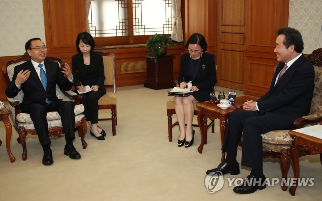 (¼­¿ï=¿¬ÇÕ´º½º) ±è½ÂµÎ ±âÀÚ = À̳«¿¬ ±¹¹«ÃѸ®°¡ 30ÀÏ Á¤ºÎ¼­¿ïû»ç¿¡¼­ ¹æÇÑÇÑ ÅÁ·®Áî(ÓÐÕÞòª) Áß±¹ ÃæÄª½ÃÀåÀ» ¸¸³ª ´ëÈ­Çϰí ÀÖ´Ù. 2019.5.30