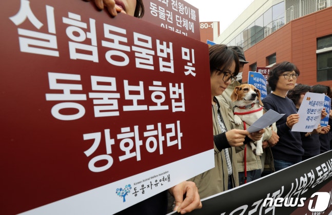 (¼­¿ï=´º½º1) ¿À´ëÀÏ ±âÀÚ = ¼¼°è ½ÇÇ赿¹°ÀÇ ³¯ÀÎ 24ÀÏ ¼­¿ï °ü¾Ç±¸ ¼­¿ï´ë ¼öÀÇ»ý¹°ÀÚ¿ø¿¬±¸µ¿ ¾Õ¿¡¼­ ¿­¸° 'À̺´Ãµ ±³¼ö ÆÄ¸é Ã˱¸' ±âÀÚȸ°ß¿¡¼­ µ¿¹°º¸È£´Üü ȸ¿øµéÀÌ º¹Á¦°ß ¿¬±¸ »ç¾÷ Áß´ÜÀ» Ã˱¸Çϰí ÀÖ´Ù.