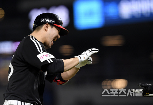 LG ±è¹Î¼ºÀÌ 18ÀÏ Ã¢¿ø NCÀü¿¡¼ 4-1·Î ¾Õ¼± 8ȸ Åõ·± Ȩ·±À» Ãij½ µÚ ¼±ÇàÁÖÀÚ¿Í ÇÏÀÌÆÄÀ̺긦 ÇϰíÀÖ´Ù. 2019.04.18. â¿ø