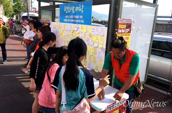 6¿ù 8ÀÏ ¿ÀÈÄ ºÎ»ê ³²±¸ °¨¸¸µ¿ ȨÇ÷¯½º ¾Õ¿¡ ¸ðÀÎ ½Ã¹ÎµéÀÌ È£¼ÒÇß´Ù. '°¨¸¸ 8ºÎµÎ ¹Ì±ººÎ´ë ¼¼±Õ¹«±â½ÇÇè½Ç Ãß¹æ ºÎ»ê½Ã¹Î´ëÃ¥À§¡¤³²±¸Áö¿ª´ëÃ¥À§'°¡ "¹Ì±ººÎ´ë ¼¼±Õ¹«±â ½ÇÇè½Ç Ãß¹æ Áֹδëȸ"¸¦ ¿¬ °ÍÀÌ´Ù.